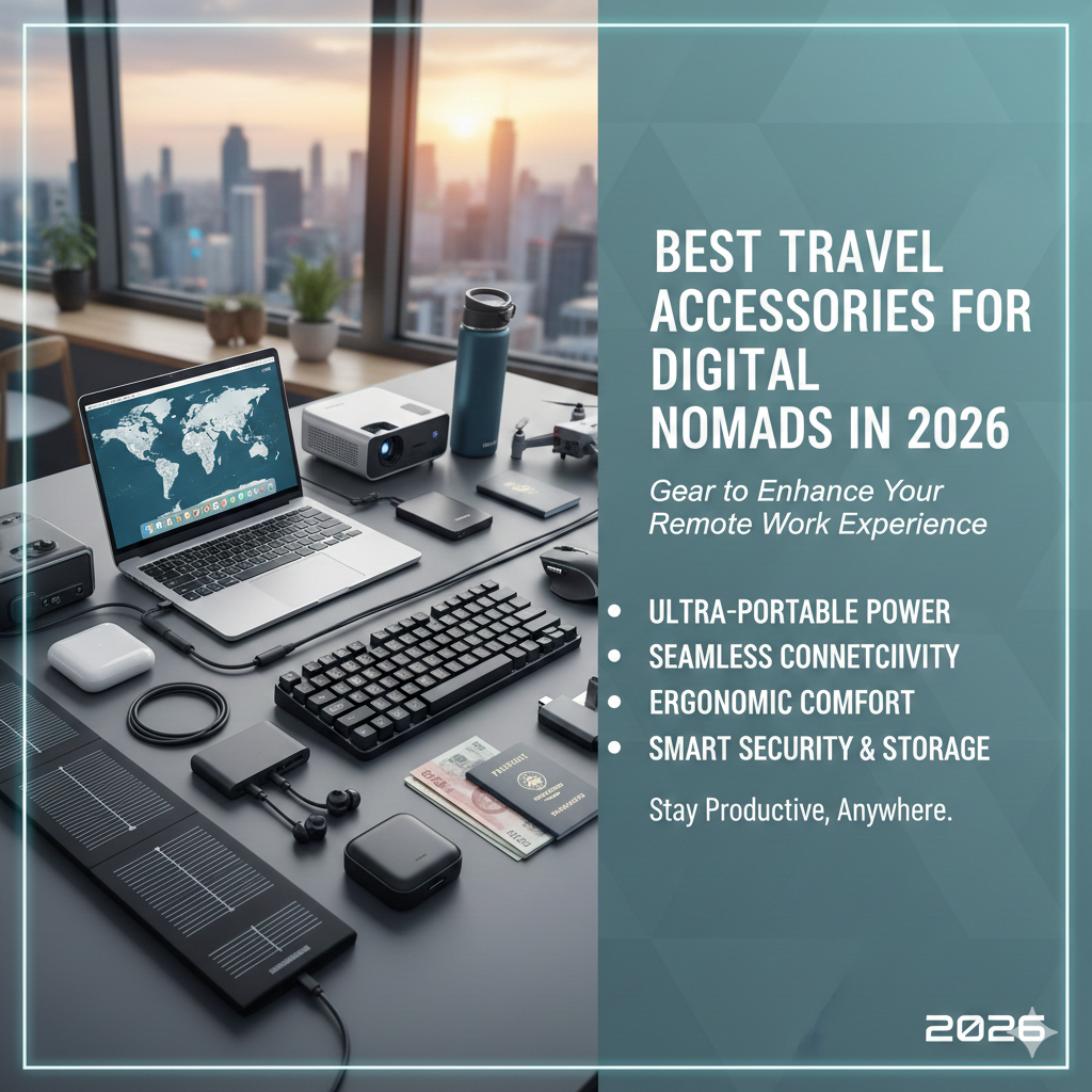 As a Best Travel Accessories in 2026, the right travel accessories can make all the difference in your productivity, comfort, and overall work-life balance. From portable chargers to organizing tools, the gear you bring can enhance your ability to work from anywhere. In this guide, we’ll cover the must-have travel accessories that will help you stay connected, organized, and efficient on your journey.